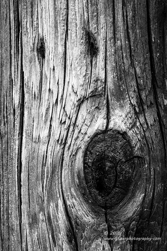 In an ironic twist of fate, these afterthoughts of a composition turned out to be some of my favorites of the day. The black and white really made the images pop, and showcased the wonderful textures of the wood. The knots were perfect visual anchors which also caused the lines in the wood to curve around them. The way the lighting was creating shade was another big plus to these images. There was just so much going for them photographically.